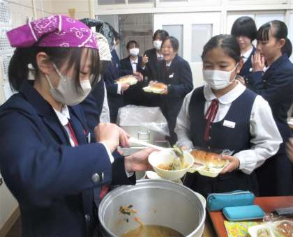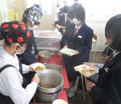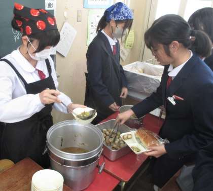 給食の配膳風景です。