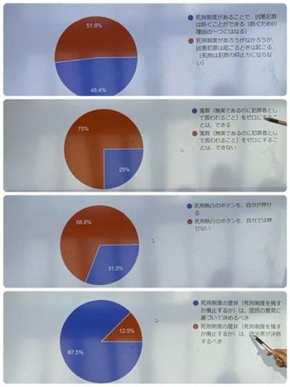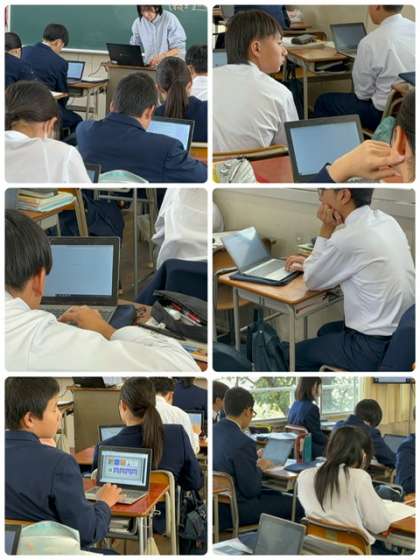 『死刑制度』について、一人一台PCを用いながら、お互いの意見を確認し合いました。