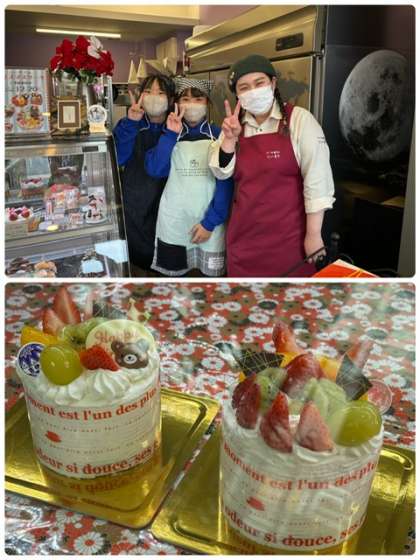 ケーキ作りも体験させていただきました(写真一番下)。すごい!!たっぷりフルーツが盛り盛りで豪華ですね!