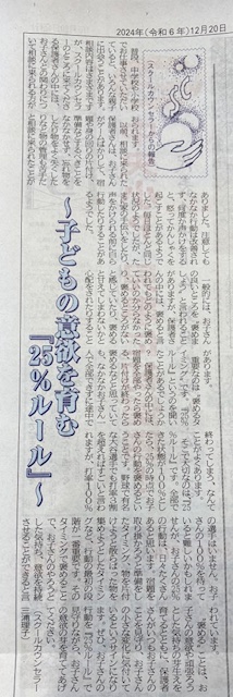 ”褒める”ことは、お子さんの意欲や頑張ろうとした気持ちの芽生えを育てるとともに、保護者さんがいつもお子さんのことを見守り、お子さんの小さな変化に気づいているというサインになります。ぜひ、お子さんの行動を『25%ルール』で見守りながら、お子さんの意欲の芽を育ててあげてください。