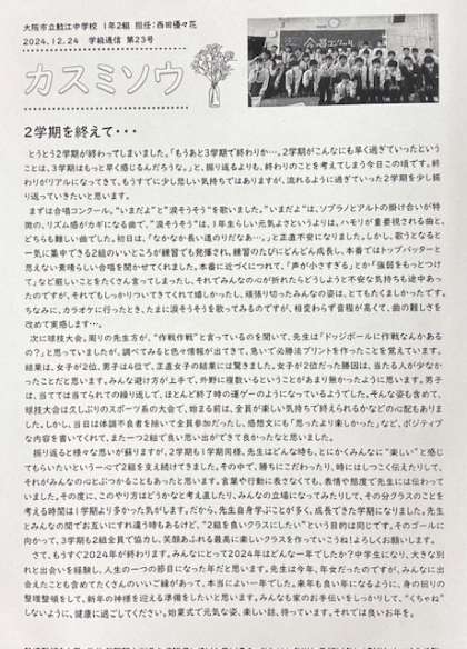 カスミソウ(1年2組学級通信、12月24日発行、第23号)