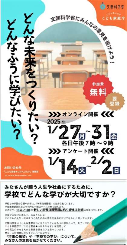 こども家庭庁より「こども若者 いけんぷらす」「アンケート開催」