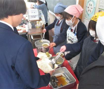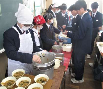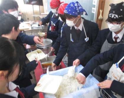 給食の配膳風景です。
