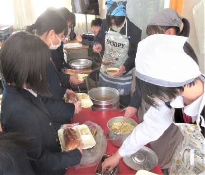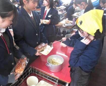 給食の配膳風景です。