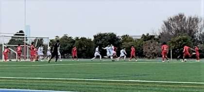前半早々にコーナーキックを含め2点を先制されてしまいますが、前半終了間際に1点を取り返し、2-1で前半を折り返します。後半も一進一退の攻防でしたが、相手の粘り強い守備に苦戦してしまいます。