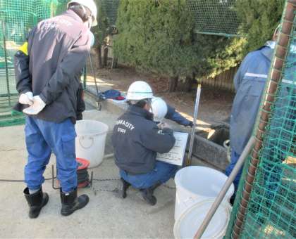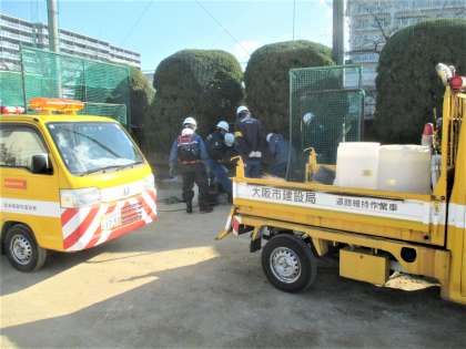 都市整備局 中浜公営所より側溝 土砂の清掃です。