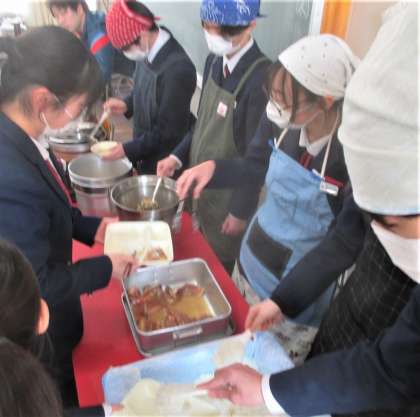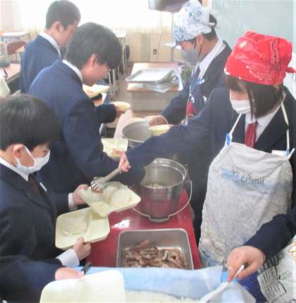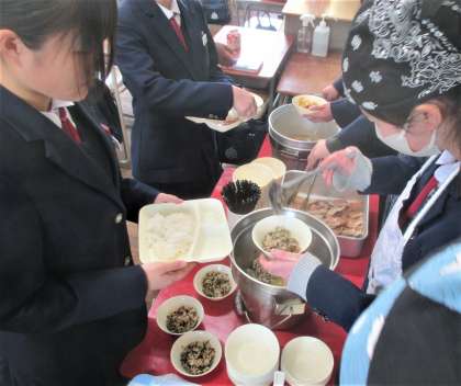給食の配膳風景です。