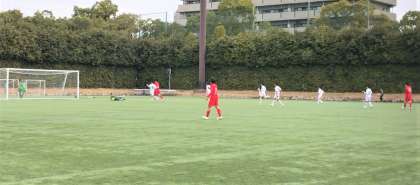 3月8日(土)フレッシュリーグ準決勝が鶴見緑地第一球技場で行われました。対戦相手は下福島中学校です。互いに決定機を作りましたが、シュートが入らず0-0で前半を折り返します。