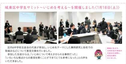 城東区中学生サミット「いじめを考える」が掲載されています。