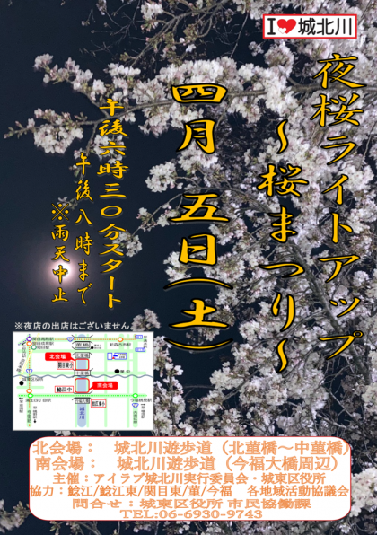 城北川 夜桜ライトアップのお知らせ