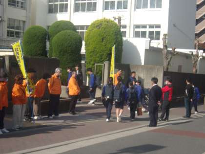 4月9日(水)の登校時に城東区保護司会の方々と一緒に「社会を明るくする運動」(あいさつ運動)を行いました。
