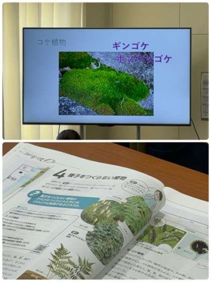 映像および資料を見ながら、コケ植物の特徴を確認していきました。