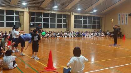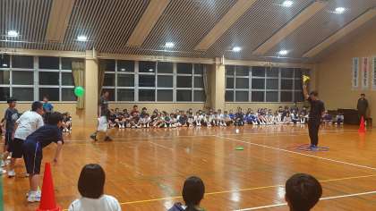 先生のカッブめがけてくじで引いた色んなものを投げて近い人が高得点です。