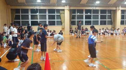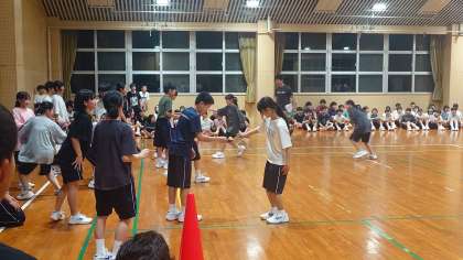 スプーンにピンポン玉を乗せ男女交互に運ぶリレーです。
