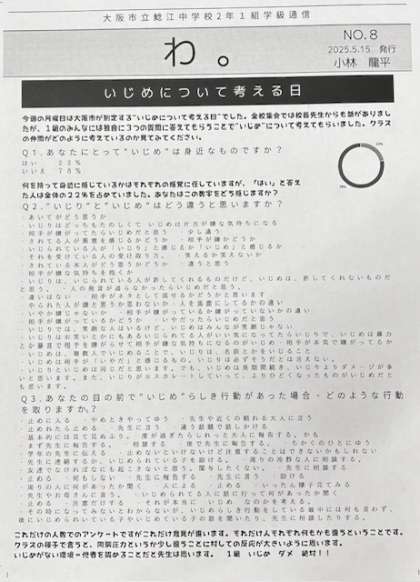 今週の月曜日は大阪市が制定する”いじめ(いのち)について考える日”でした。