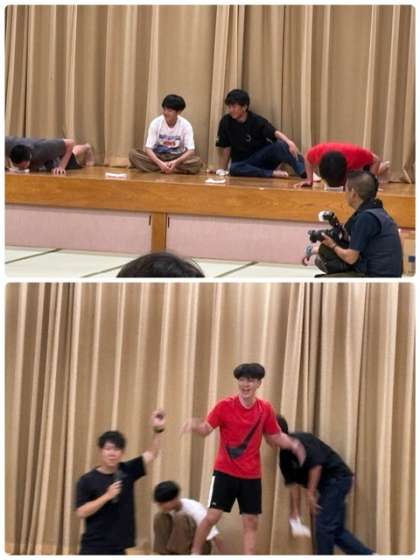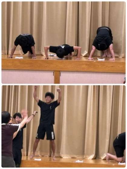 デモンストレーションの部では先生方が腕立て伏せ対決!