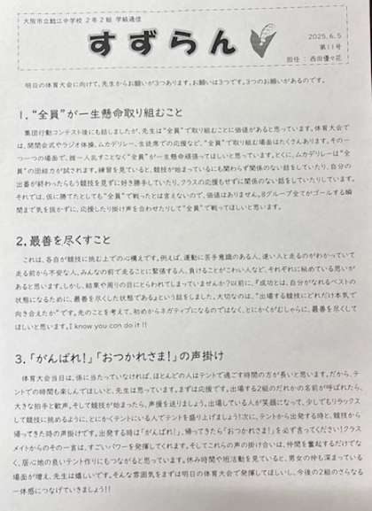 2年2組学級通信『すずらん』(2025.6.5発行、第11号)より一部抜粋