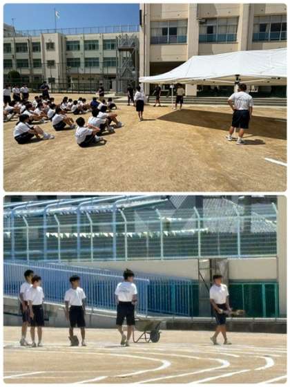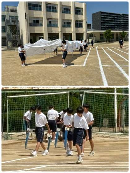 暑さの中、係の生徒はみんなキビキビと動いて準備しています。担当の教職員方も的確な指示を出しています。
