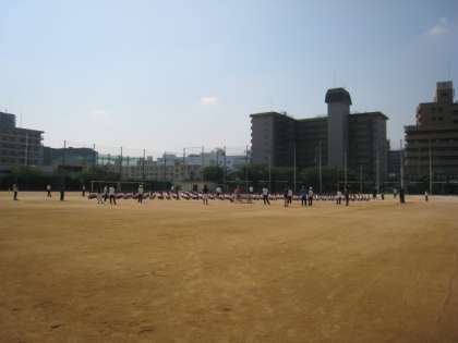 本日、はじめての土曜授業が行われました。来たる6月3日(金)の体育大会に向けたはじめての全体練習になります。この練習がはじまるまで、各学年では日々練習を重ねてきました。特に1年生は初めての体育大会になります。戸惑いながらも徐々に学校生活に慣れ頑張ってきました。朝早くから、『いちに、いちに、それ!』の掛け声が今まさに聞こえるかと思います。