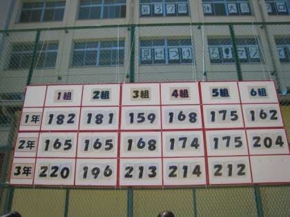 さて、午前中の得点集計と本日の体育大会のスローガンを掲載します。