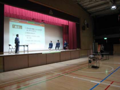 『面接』とは?どんなことをすればいいのか、どんなことをすれば面接官にいい印象を与えるのか、基礎的なマナーについて勉強しました。12月より校長面接があります。講話の中で坂本様は、日頃から意識しておくこと、積み重ねが大事ともお話しされていました。しっかり頑張ってください。
