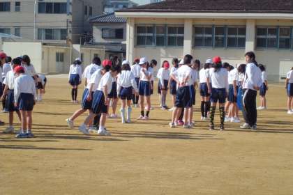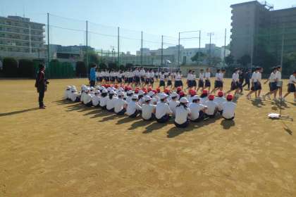 号令とともに動き、隊形がまとまって整えられ、集団行動がとれました。6年生と中学1年生の交流もできました。