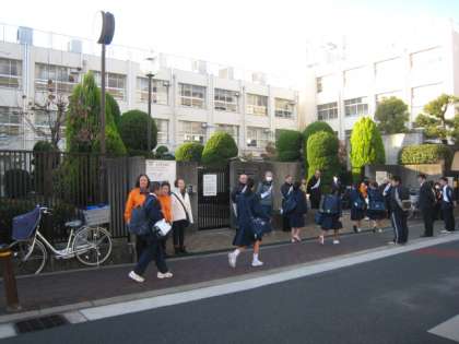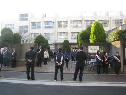 12月21日、社会を明るくする運動の一環として、『朝のあいさつ運動』がありました。今朝は、少し寒さがゆるみましたが、吐く息は白くなりました。朝早くから地域の皆さんが『おはようございます』のかけ声をかけてくださいました。みなさんは大きな声で返すことができましたか。鯰江中学校では毎日先生方が正門に立って『あいさつ』の声かけをしています。さて、学校は明日で終業式をむかえ、あさってからは冬休みに入ります。元気よく明日は『おはようございます!』の大きな声で校門に入ってください!