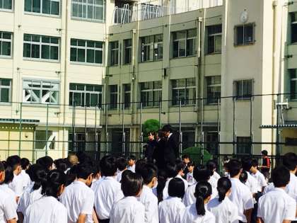 5月24日から、本校に教育実習生として4名来られていましたが、昨日(13日)で実習の最終日となりました。全校集会で実習の代表者のあいさつがありました。
