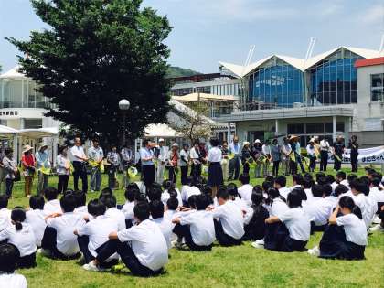 修学旅行最終日。各家庭で様々な体験をさせていただき、本当にいい経験になりましたね。退村式の様子です。