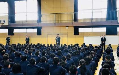 全校生徒が、体育館に集合して、静かに、真剣に、始業式に参加