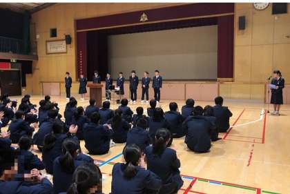 体育館で行われました。発表は選ばれた8名が行いました。実体験