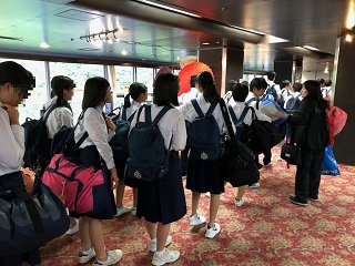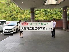 放生園(時計台)前に集合し、バスで一路、本日の宿舎