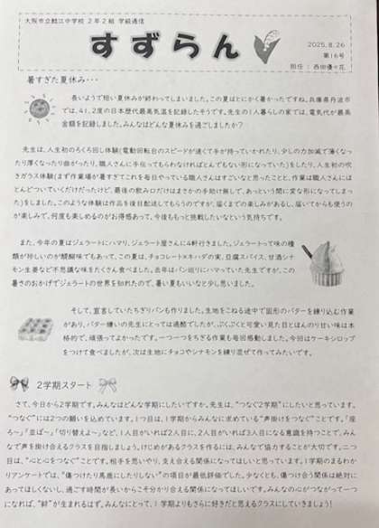 すずらん(8月26日発行、2年2組学級通信 第16号)より一部抜粋