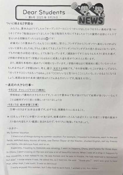 Dear Students (8月26日発行、3年2組学級通信第6号)より一部抜粋