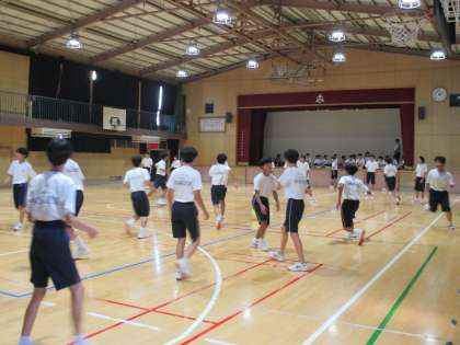 昨日は水泳でしたが、今日は体育館で球技(ドッジボール)です。