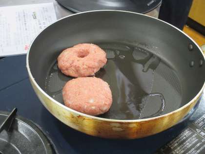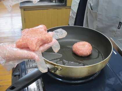 ハンバーグの成型を各自、自分の好きな形に仕上げていました。