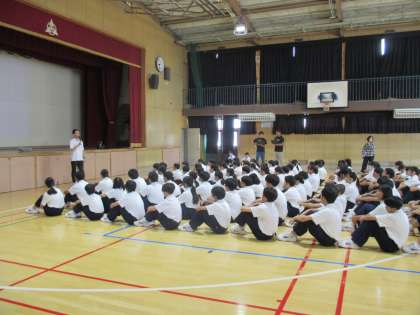 すでに昨日、各クラスで概要については説明していますが、全体で主に行程について確認しました。楽しみですね。