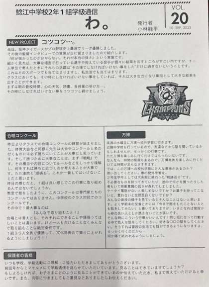 わ。(2年1組学級通信VOL.20、9月10日発行)
