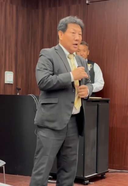 写真は主催者である大阪市立加美南中学校阪井千明校長の開会式でのあいさつです。