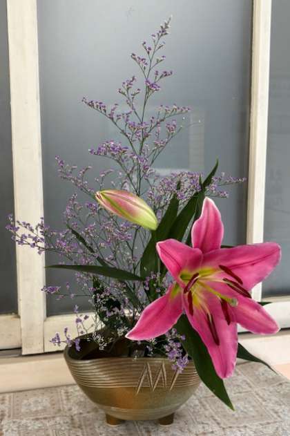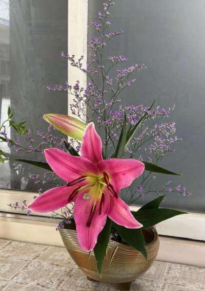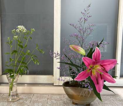 紫色の小花は、リモニウム、別名ブルーファンタジー。こちらもしっかりしています!