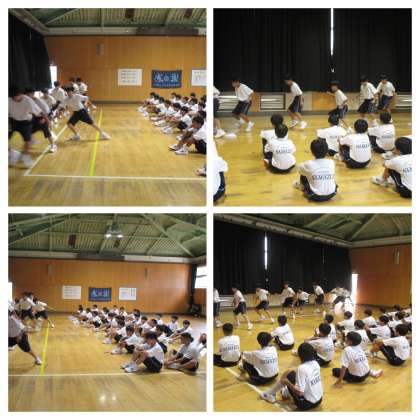 男子は格技室にて新体力テスト実施。種目は「反復横跳び」でした。