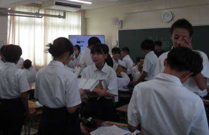 いろいろなペアになって、英語でコミュニケーションを取っていました。