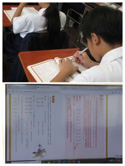 漢文の読み方についての学習です。「レ点」など読み方の基本をまず学習しました。