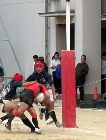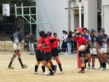 強豪文の里中学校に2本トライ先取されましたが、やりました!
