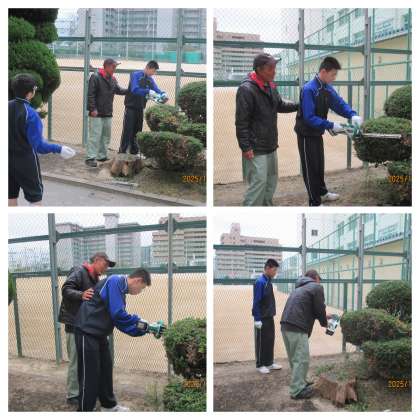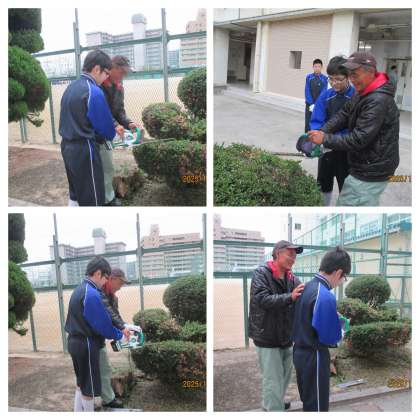管理作業員須川さんのご指導のもと、安全に十分配慮しながら実習しています。