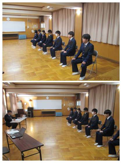 進路(面接練習)を多目的室で実施しました。