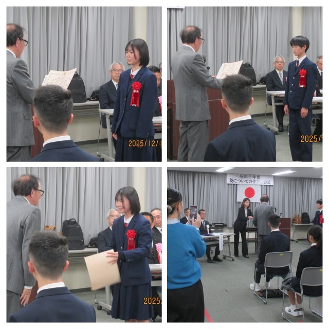 その中から、3年生5名がそれぞれ次の賞を受賞し、表彰されました。