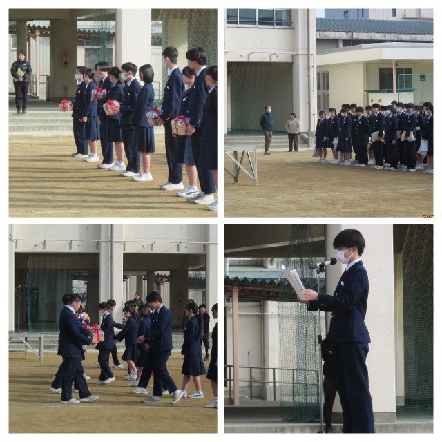 少し冷たい風が吹く中、在校生代表生徒からのお祝いの言葉、卒業生代表生徒からの送る言葉が送られました。