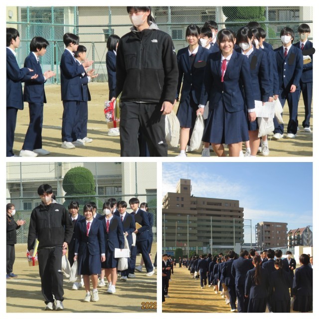 在校生が作った花道を4組、5組の卒業生が退場していきます。晴れやかな笑顔があふれています。