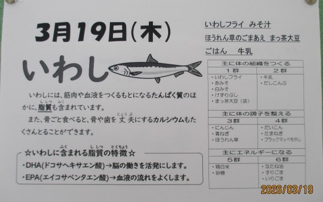 給食(いわしのフライ)